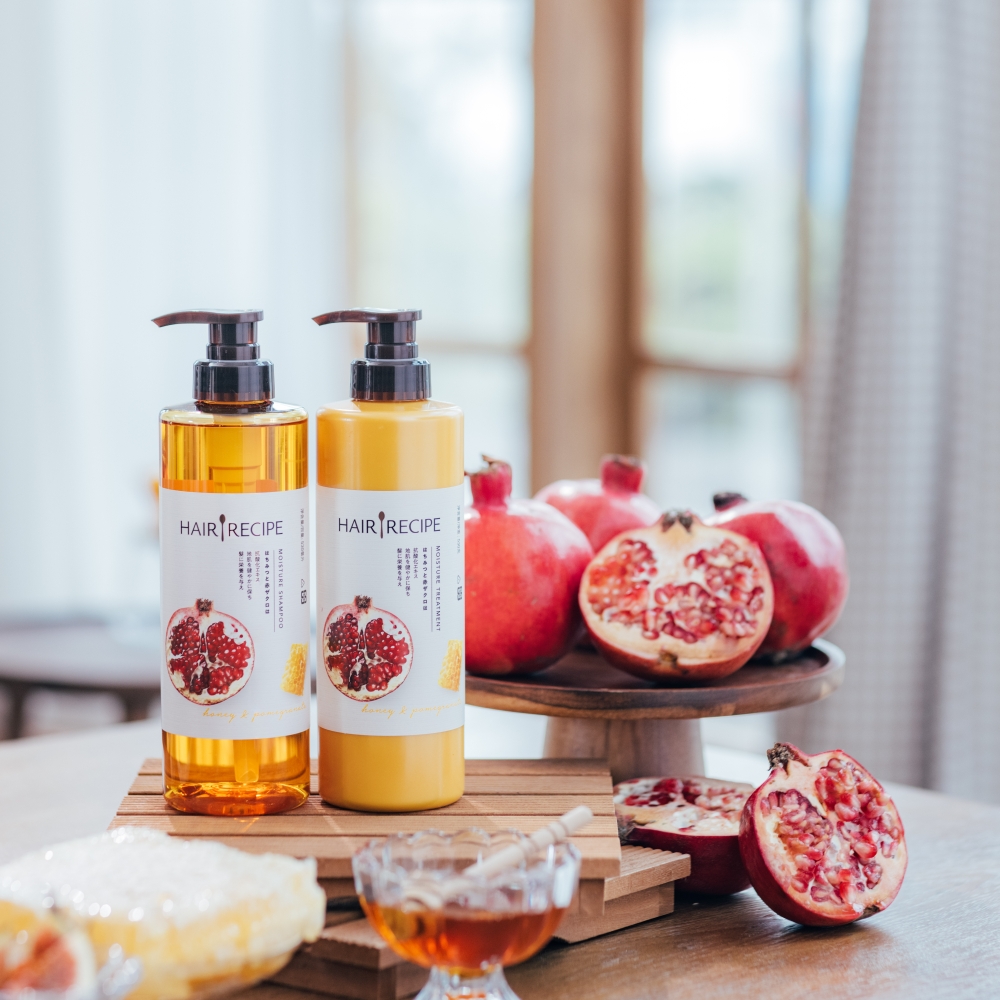 給需要加倍呵護、乾性髮質的你,介紹這款蜂蜜X石榴水潤亮澤洗護系列,質感輕盈不油膩,除了蘊含蜂蜜及石榴配方,特別加入抗氧化精華及雙重維他命原配方,修護頭皮屏障,減少髮絲水分流失,滋潤及修護乾旱髮絲,持續使用更可以改善髮質,養出水潤亮澤秀髮。