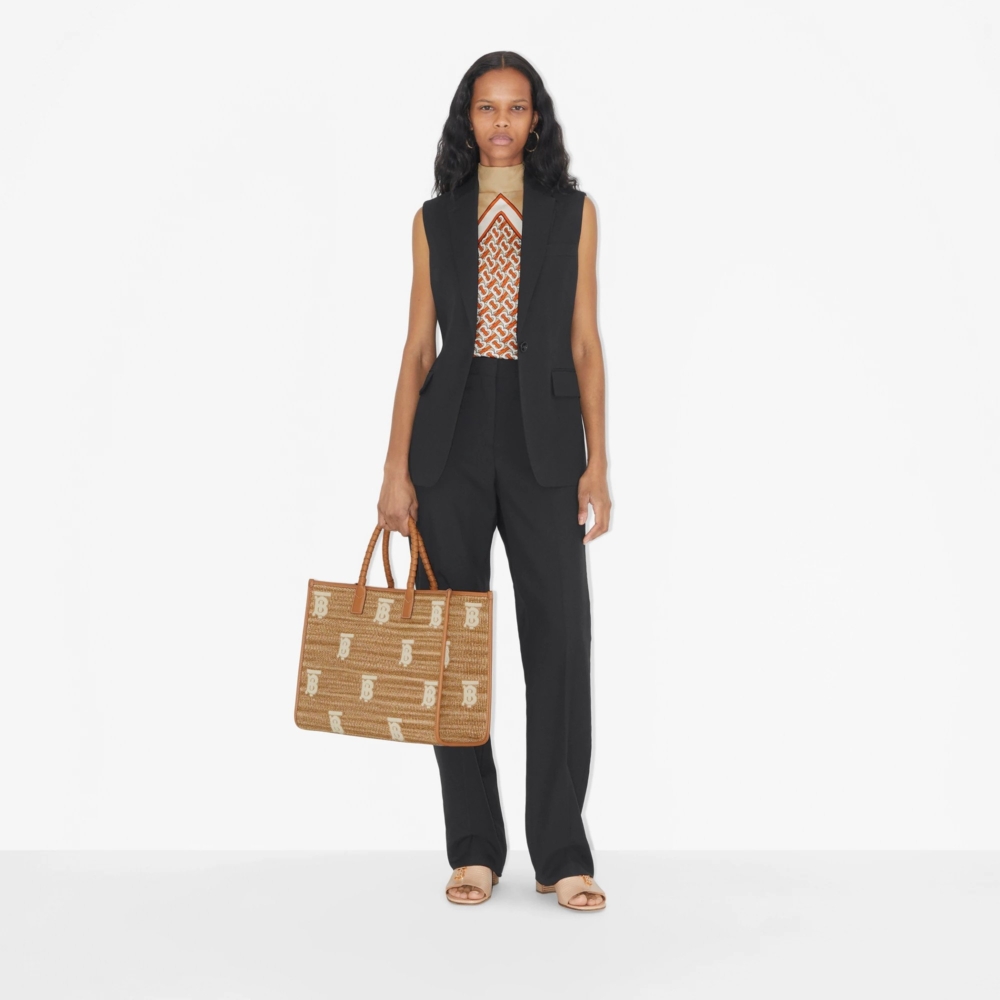 收納空間充裕的酒椰纖維效果托特包,將Freya Tote全新迷人夏日風采展現得淋漓盡致,飾有Thomas Burberry字母組合,頂部手提把以皮革製作,彰顯材質的微妙對比。同時手繪塗漆邊緣搭載亮澤金屬配件,內部配有1個拉鍊口袋,裝上1台筆電、各式文件、甚至上班一整天需要的物品都不是問題。HK$16,300