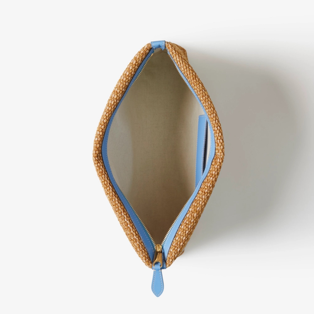 收納包早已成為女性大容量手袋內必備的單品,不只能井然有序的歸類物品,當作小包使用更是恰到好處。這款Burberry Monogram Raffia-effect Zip Pouch配有完美大小尺寸,以義大利製的酒椰纖維的打造而成,正面飾有壓縫皮革飾邊和Thomas Burberry花押字圖案,精緻程度在春夏季節更顯得獨一無二,像是模特兒以捧頰在手中的方式,展現現代時髦的時尚魅力。HK$8,900