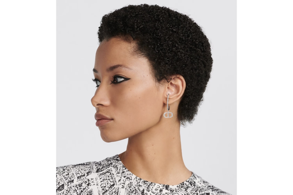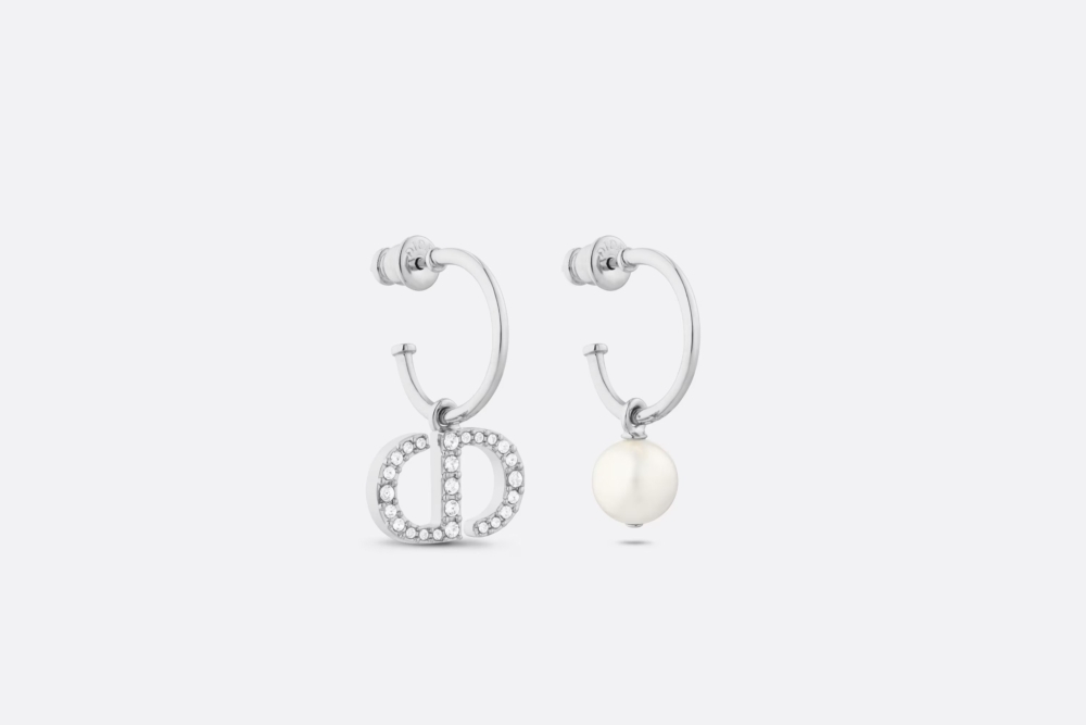 本季Petit CD耳環設計時尚兼具簡約,以銀色飾面金屬製成,並且採用環圈設計,一邊飾有鋪鑲銀色色調水晶的 CD 標誌,另一邊則飾有白色樹脂珍珠。不對稱的設計,佩戴在身上充分展現優雅的姿態,巧妙地為造型增添魅力。HK$4,100