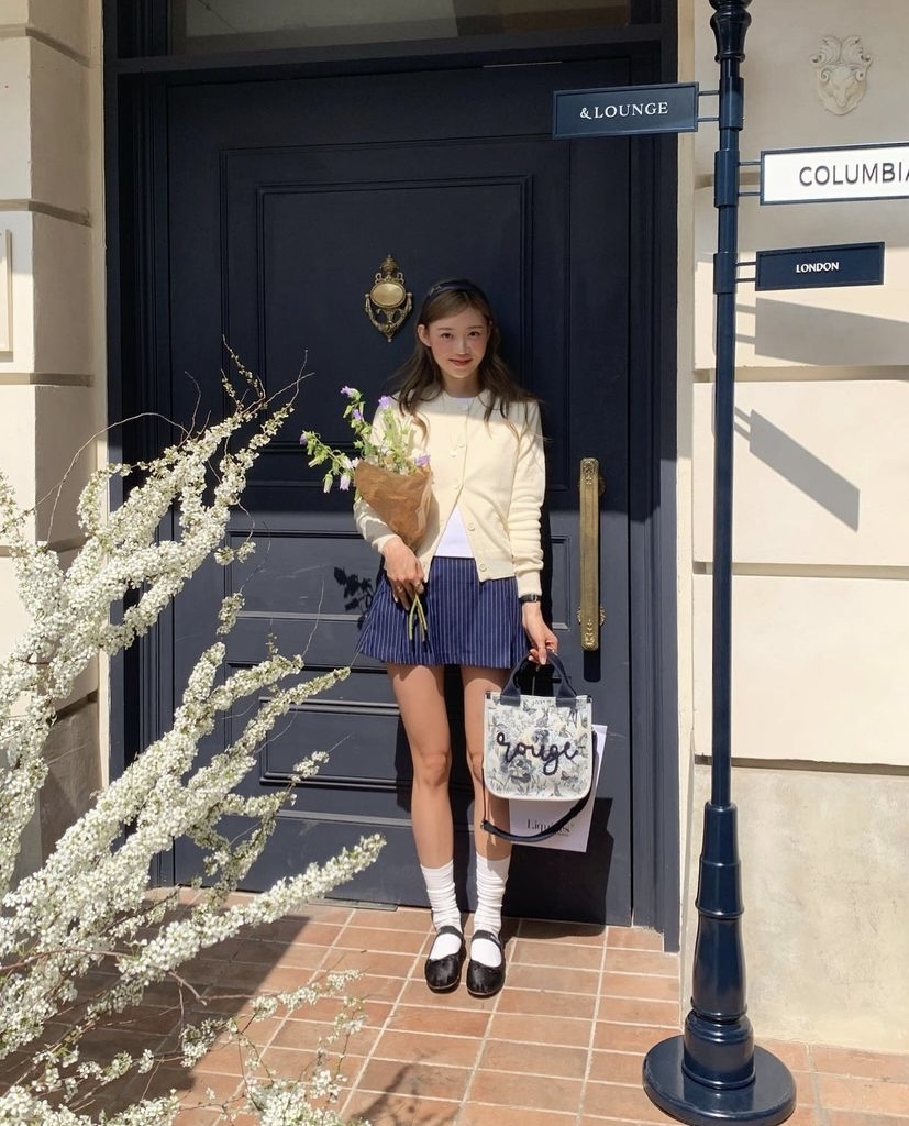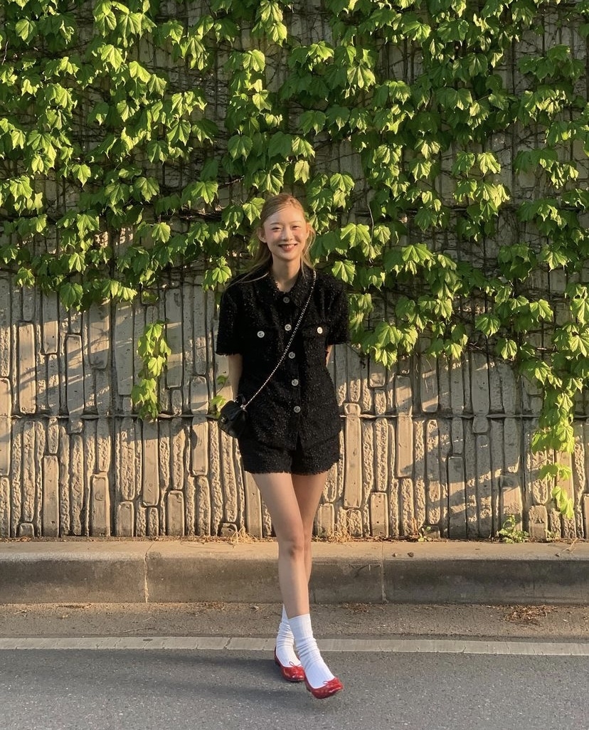 色彩斑斕的彩虹配色及黑白色調都能完美駕馭,Jellabee目前頂著一頭淺色的長髮,在街道上隨意被捕捉的畫面,可愛又性感。短褲把比例拉長,長襪搭配芭蕾舞鞋的,整體的視覺效果顯得高瘦,169公分的她,每回照片看起來都像是超過一百七公分,擁有好身材之外,更要懂得穿搭。