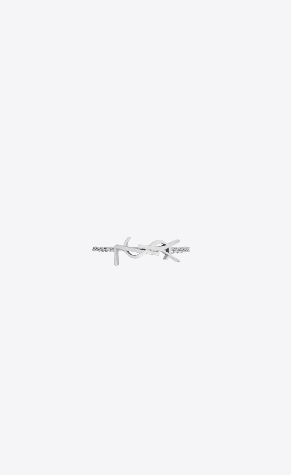 金屬元素在Saint Laurent的時裝系列中發揮了重要作用,存在感極強鏈條、不規則的曲線,不用刻意張揚就能與線條流暢的襯衫、西裝外套和其他服裝的黑白色調形成鮮明對比。而形象廣告中,模特兒們身穿著黑色薄紗面料,配戴多個線性、前衛的高級珠寶系列作品,完美展現了獨特的個人風格,簡潔俐落又自帶氣場。