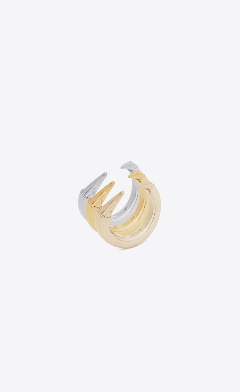 Anthony Vaccarello將個性珠寶作為其犀利的秀場時尚宣言的主要特色,選用18克拉黃金、鑽石和其他珍貴材料鑄造而成,並以細膩巧思精心演繹。雖然過去就能購買到Saint Laurent的配飾系列作品,但這個名為「Saint Laurent Haute Joaillerie」的高級珠寶是第一個採購優質金屬的系列。
