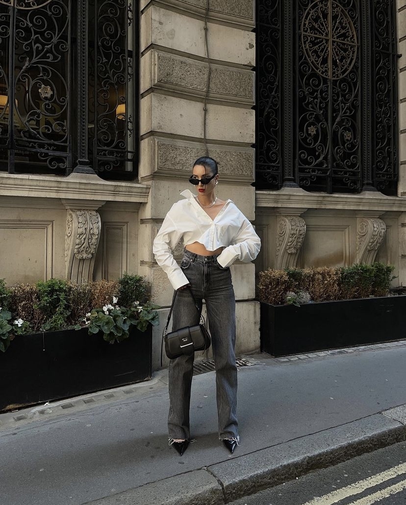 牛仔褲是一年四季不可或缺的單品,無論冬天搭配暖和的毛衣,又或是夏天隨性搭配一件背心、短版上衣,善用比例的拿捏,為簡約的造型增添迷人氛圍。像是Ivona Zupet挑選短版剪裁的寬鬆襯衫,與把衣服紮進褲子,突顯腰部,輕輕鬆鬆散發時髦又型格的氣場。