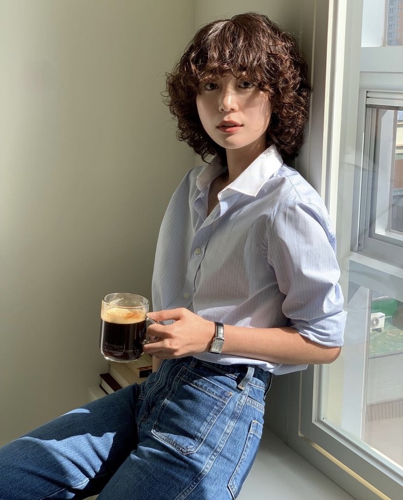 一頭中性慵懶的短捲髮:韓國模特兒mookwa帥氣嬌俏感,悠閒打扮人人都可駕馭!