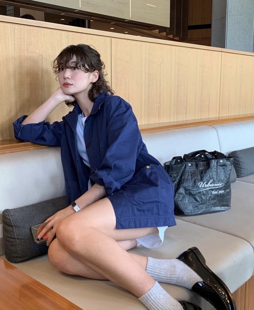來自韓國的模特兒묵화mookwa,有一股中性帥氣的嬌俏感,短短的捲髮,卻不是過於帥氣形象,反而給予溫柔氣質。mookwa平時有在經營Youtube頻道,分享穿搭與日常Vlog,自然率性的姿態,舒服的畫面,令人一直看下去。從她的社群版面,穿搭是較為舒適悠閒的搭配,同時不失時尚感,寬鬆版型幾乎不挑人駕馭。
