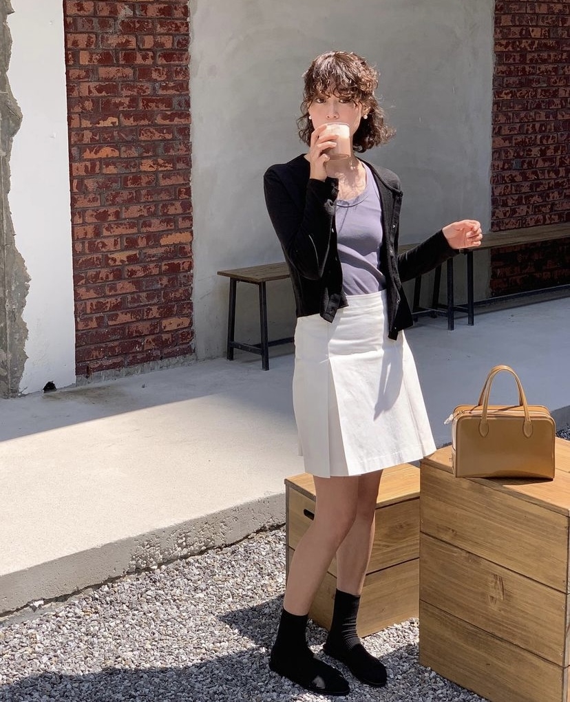 說到春夏清爽的造型,無論是短褲或短裙都派得上用場,微微A字型的白色薄透短裙,搭配合身的白色短袖,彷彿描繪了悠閒時刻的慵懶態度。如果想要更方便活動,白色短褲更是不二選擇,且上半身挑選牛仔短袖襯衫,就是最迷人的率性態度,自由自在般的自信感。