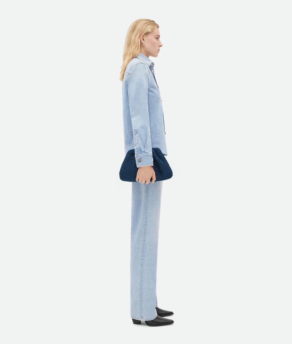 Teen Pouch手拿包將Bottega Veneta 經典的intrecciato編織,以牛仔面料詮釋,靛藍色的飽和色彩,讓原本皮革材質的經典包款呈現嶄新氣象。細節以單隔層內部容量及磁框作為開河設計,挽在手臂下或是手拎著,都可作為實用功能性包款,收納外出必備小物。HK$30,900