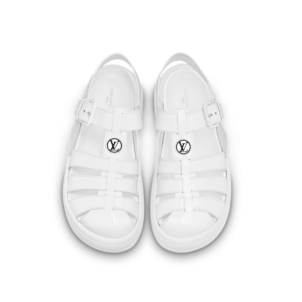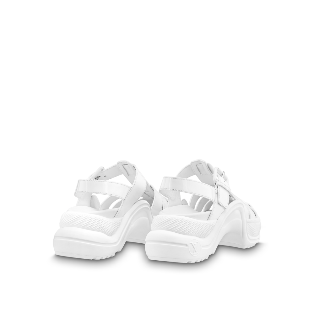 這款LV Archlight平底涼鞋選用高光漆面小牛皮製作,綴有特大的波浪形鞋底,設計靈感取材自LV Archlight運動鞋。相襯的鞋面和鞋底,正面搭帶以LV Circle橡膠標誌精緻點綴, 搭扣刻有Louis Vuitton標誌,鞋跟高為5cm,推出白色以及黑色款,在日常中相當好搭配。HK$ 10,500