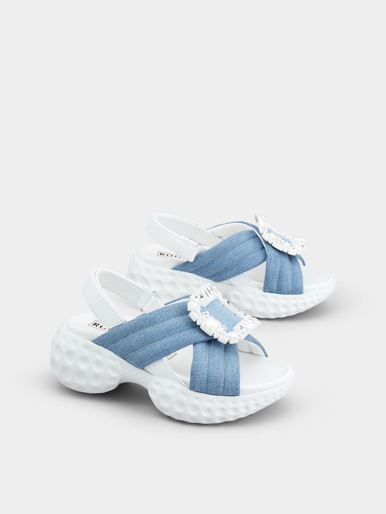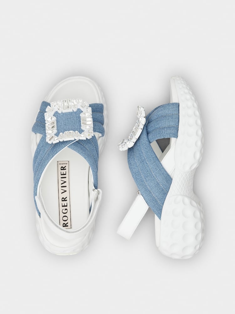 6款名牌厚底涼鞋6:Roger Vivier Viv' Run Light Strass 搭扣牛仔涼鞋
