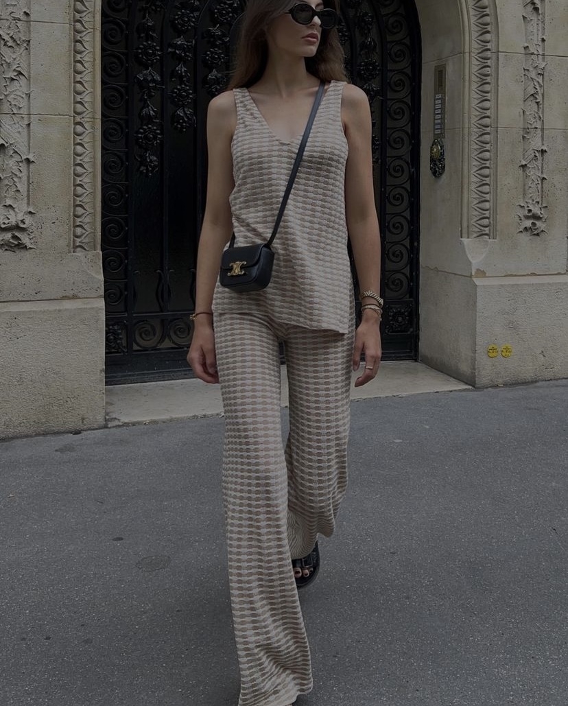 炎炎夏日,材質薄的套裝給人清爽一致性的效果,博主Marina Mustaparta利用同系列的單品背心套裝,搭配一顆CELINE輕巧的小包,整體清新,且散發出自信高級感,特別是出門前不用猶豫造型,照樣能漂亮時尚外出。
