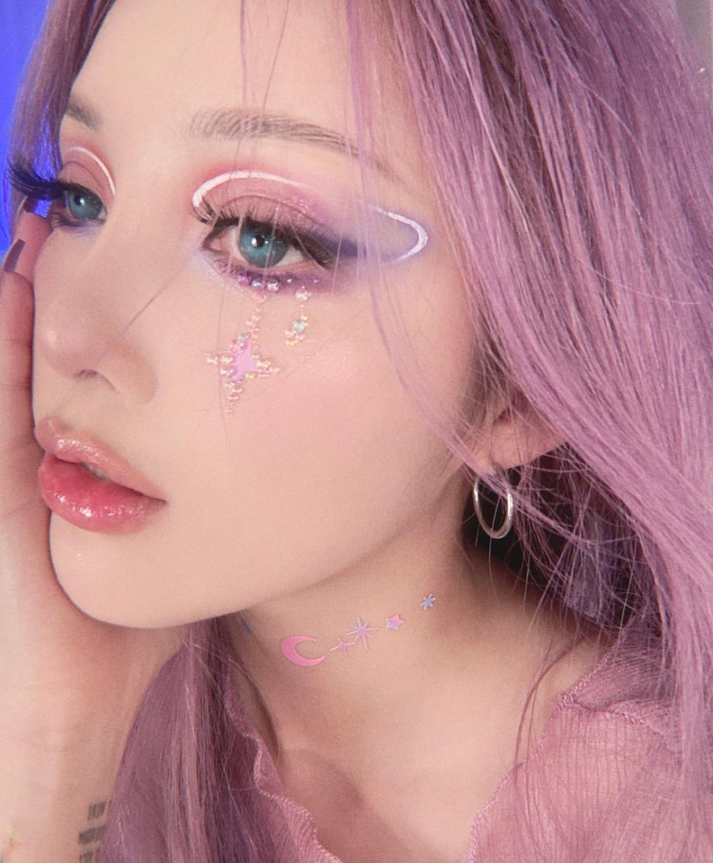 順應著Y2K流行,Face Stickers是不少人的最愛,更有將暗瘡貼轉化為可愛貼紙的形式,像是心形窩釘、花花水晶、海綿寶寶、Hello Kitty...等,舉凡在美妝界最知名的韓國彩妝師Pony,曾與美國品牌Morphe合作推出一系列紫色調夢幻太空彩妝品,其中就以星晶以及月亮的Face Stickers相當受歡迎。