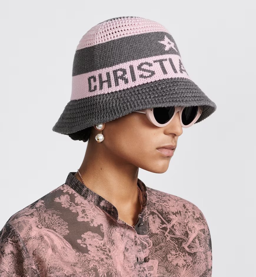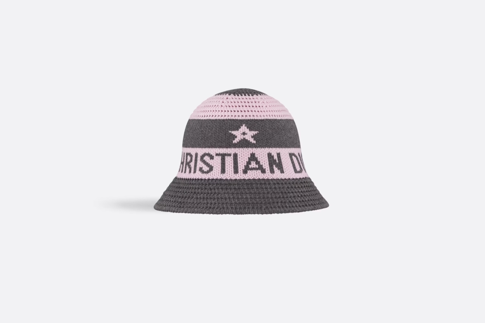 D-Tulipe針織鐘形帽是Dioriviera限定系列的作品之一,綴以經典Dior Marinière主題圖案。以粉紅色和灰色棉混紡打造而成,同時飾以品牌的Lucky Star圖案,及對比色亮眼 Christian Dior標誌,整體現代又典雅,無論任何場合都能為造型增添點綴。HK$5,900