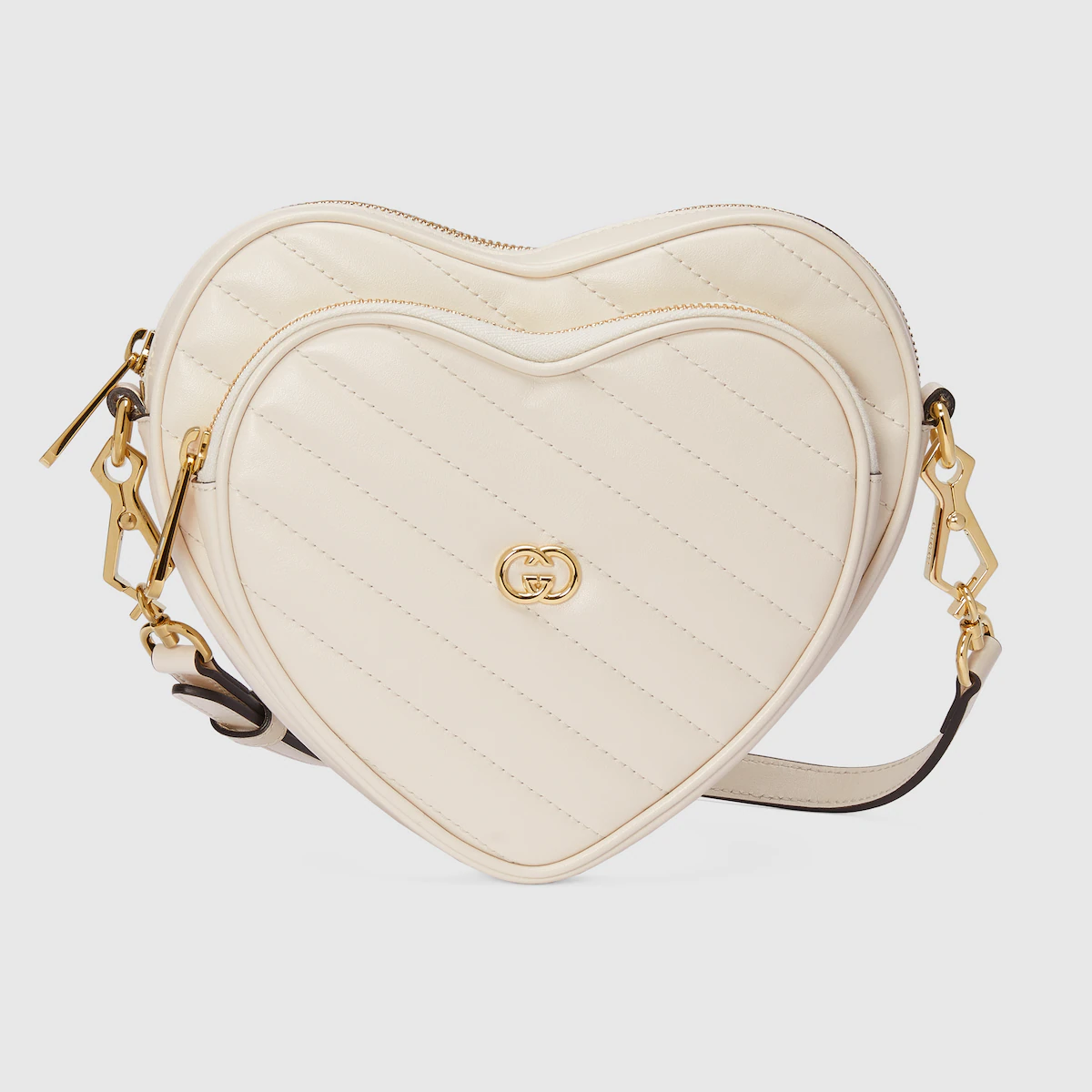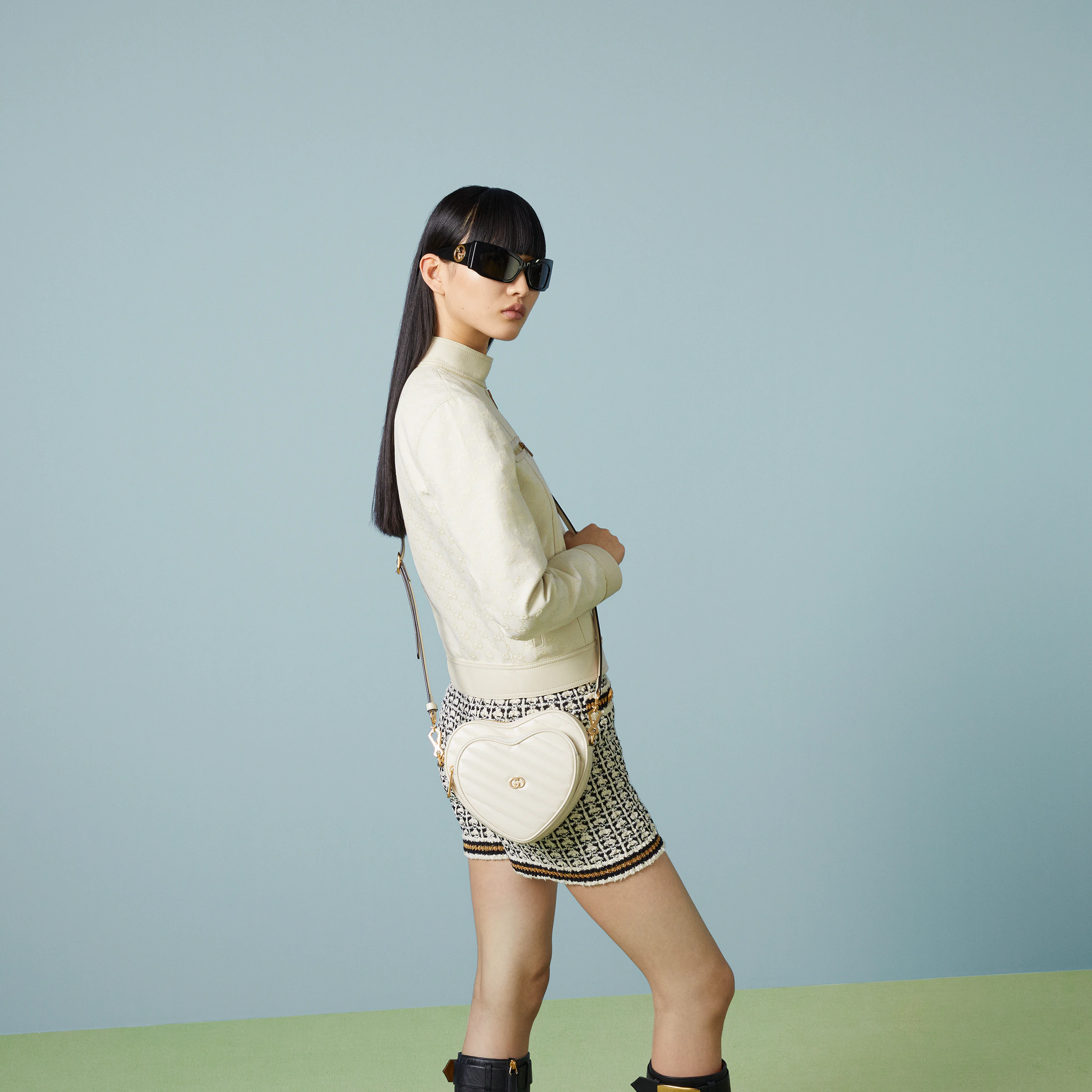 這款迷你肩揹袋以對角設計絎縫皮革製作,袋身採用心形設計,賦予妙趣變奏,並搭配互扣GG圖案從品牌的古今元素中汲取靈感,交織出獨特的包款。純白的色系,不僅符合夏季清爽氣質,融入在造型裡絕對是吸睛配件之一。HK$15,500