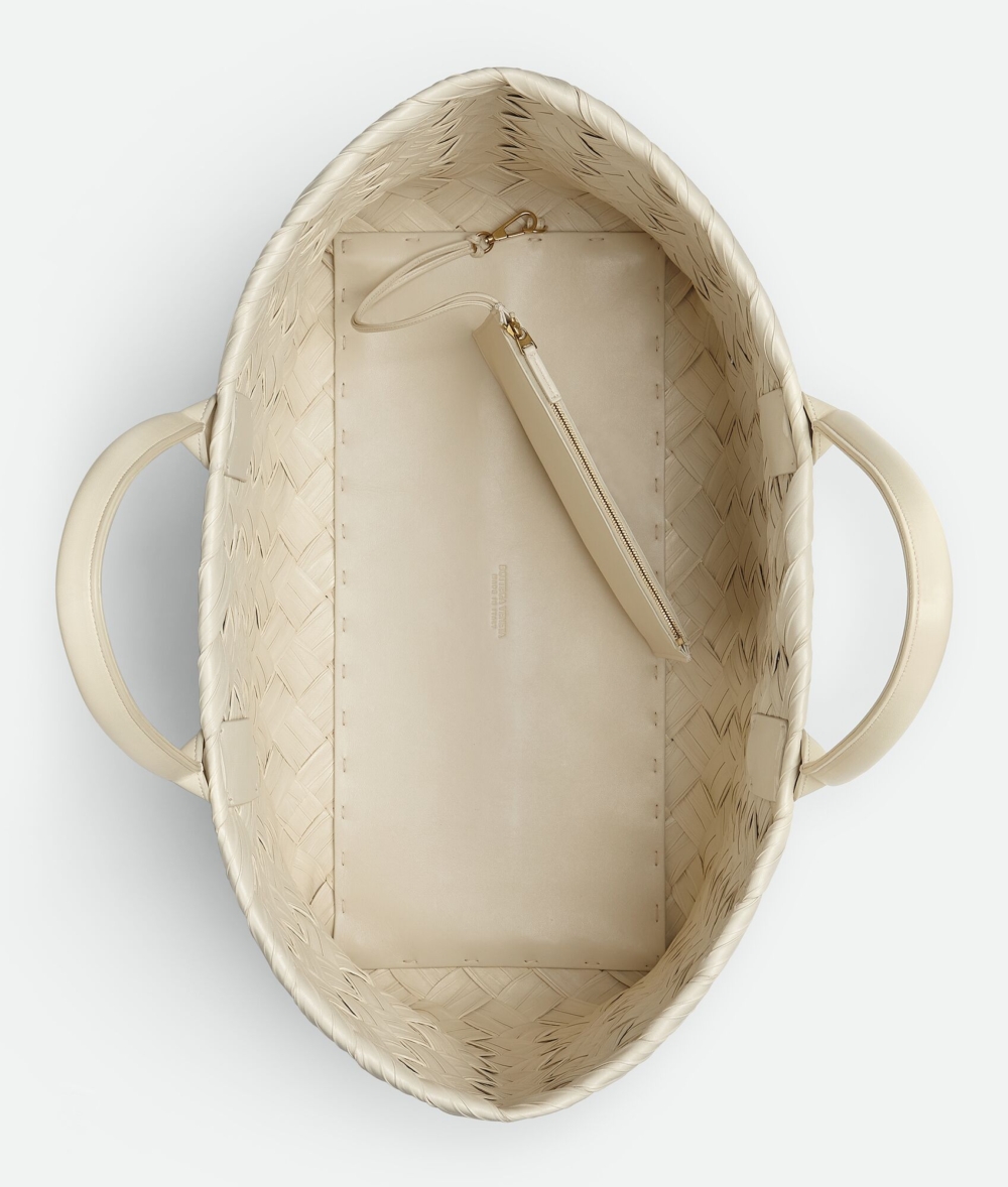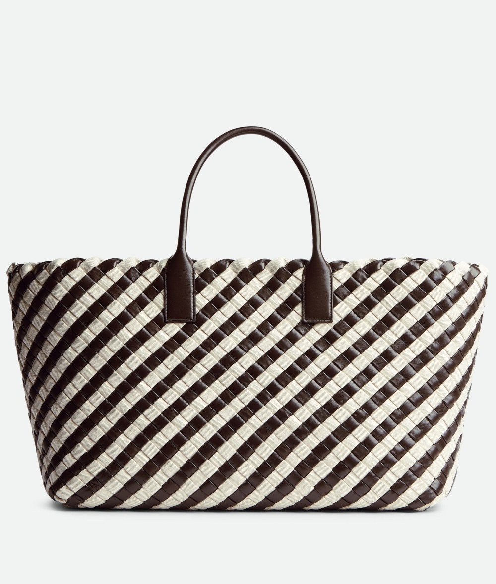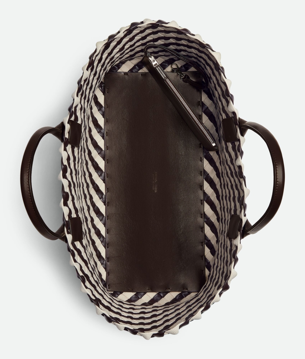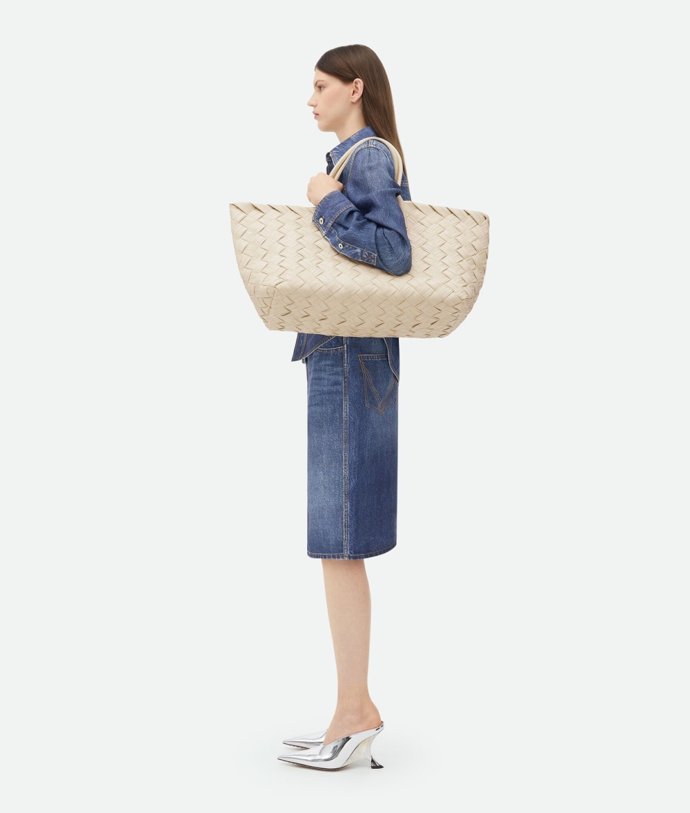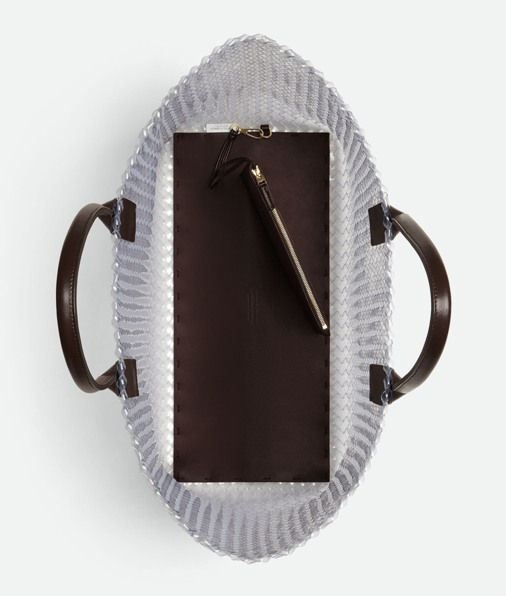 除了矽膠材質的Large Cabat,品牌全新亮相一系列托特手袋,其這顆雋永經典的手提包採用Intreccio編織技術,內部同樣配有可拆卸內部拉鍊口袋,並採用加墊納帕皮革和及帆布精心打造而成,皆經過精緻細膩的手工剪裁、針線和編織工藝製作而成,優雅的方式強調出經典感。HK$79,000