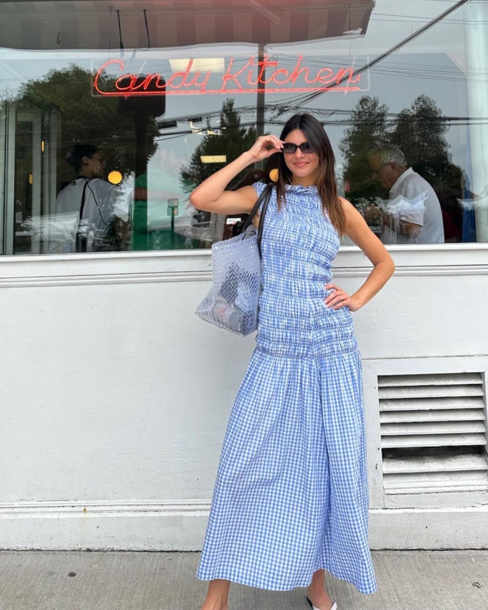 Kendall Jenner向來都是街拍中的最佳典範之一,前陣子在巴黎時裝週的私服吸引無數目光,這回身穿Comme des Garçons 1997年春夏系列的淡藍色格紋連衣裙,揹上Bottega Veneta Large Cabat Tote Bag,隨性休閒又俏皮的風格,其中目光不自覺盯住在這顆矽膠材質編織而成的Large Cabat。
