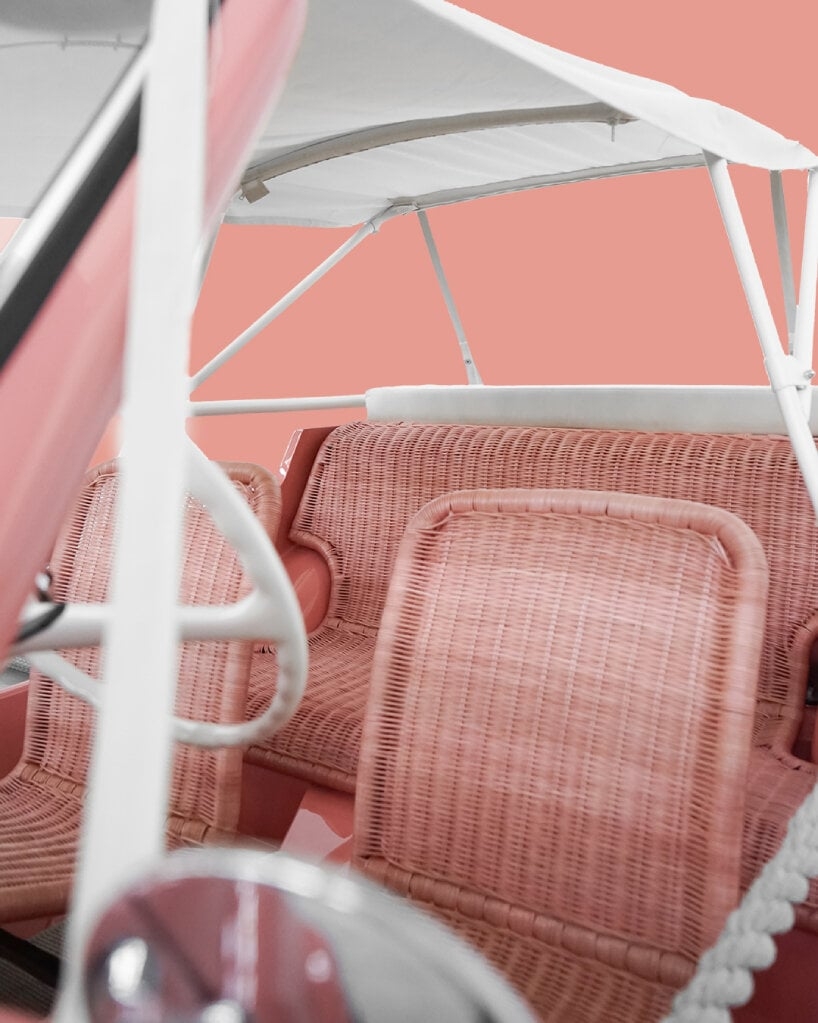 Fiat 500 Spiaggina可提供客戶任意挑選訂製藤製座椅色調,甚至可以選擇與車子塗漆相同的粉色調,打造專屬於自己的獨特車款。除此之外,這款車為電動車,在充飽電後提供足夠的續航里程來探索當地的義大利海濱小鎮,體驗一場難忘的閒逸既假期。