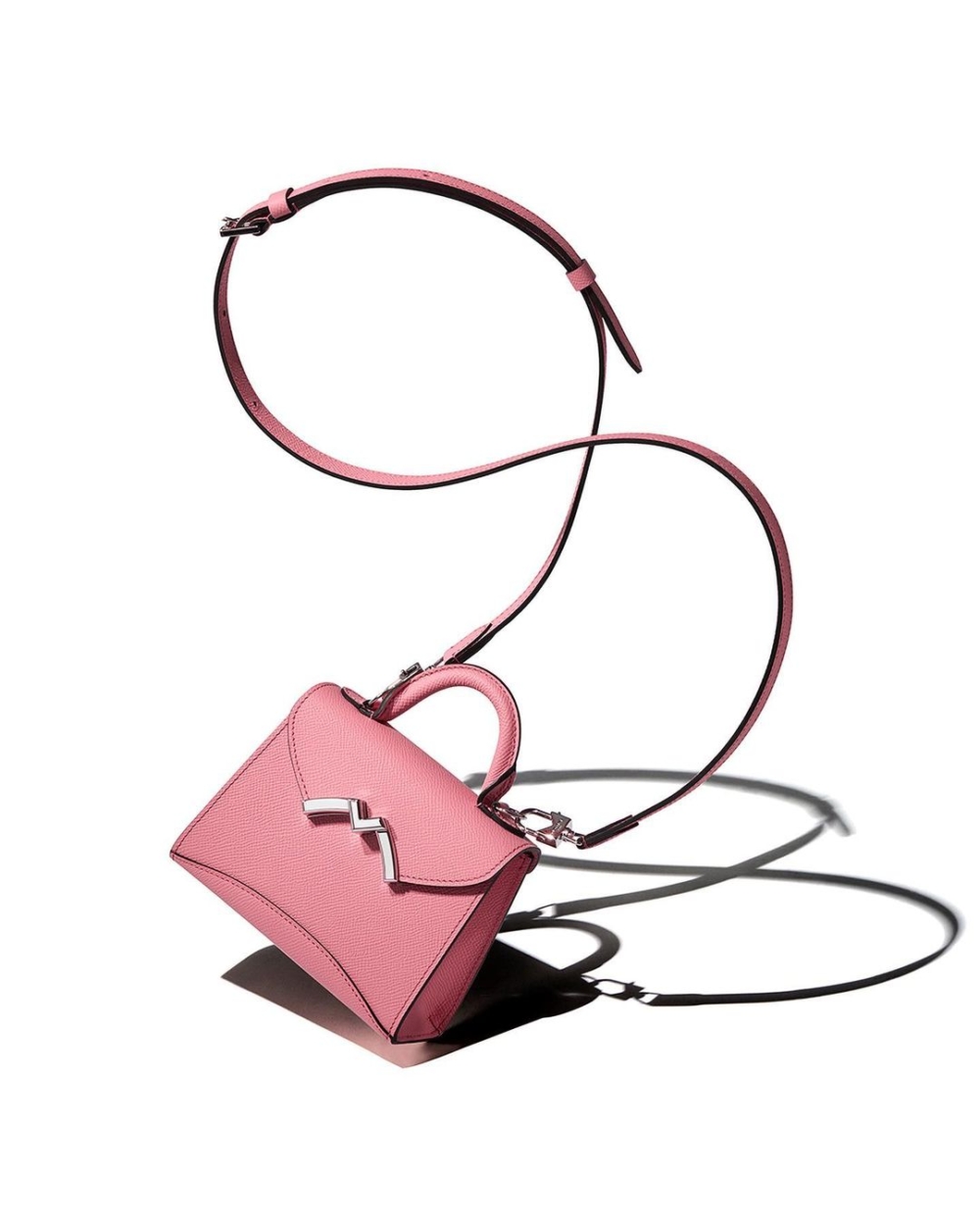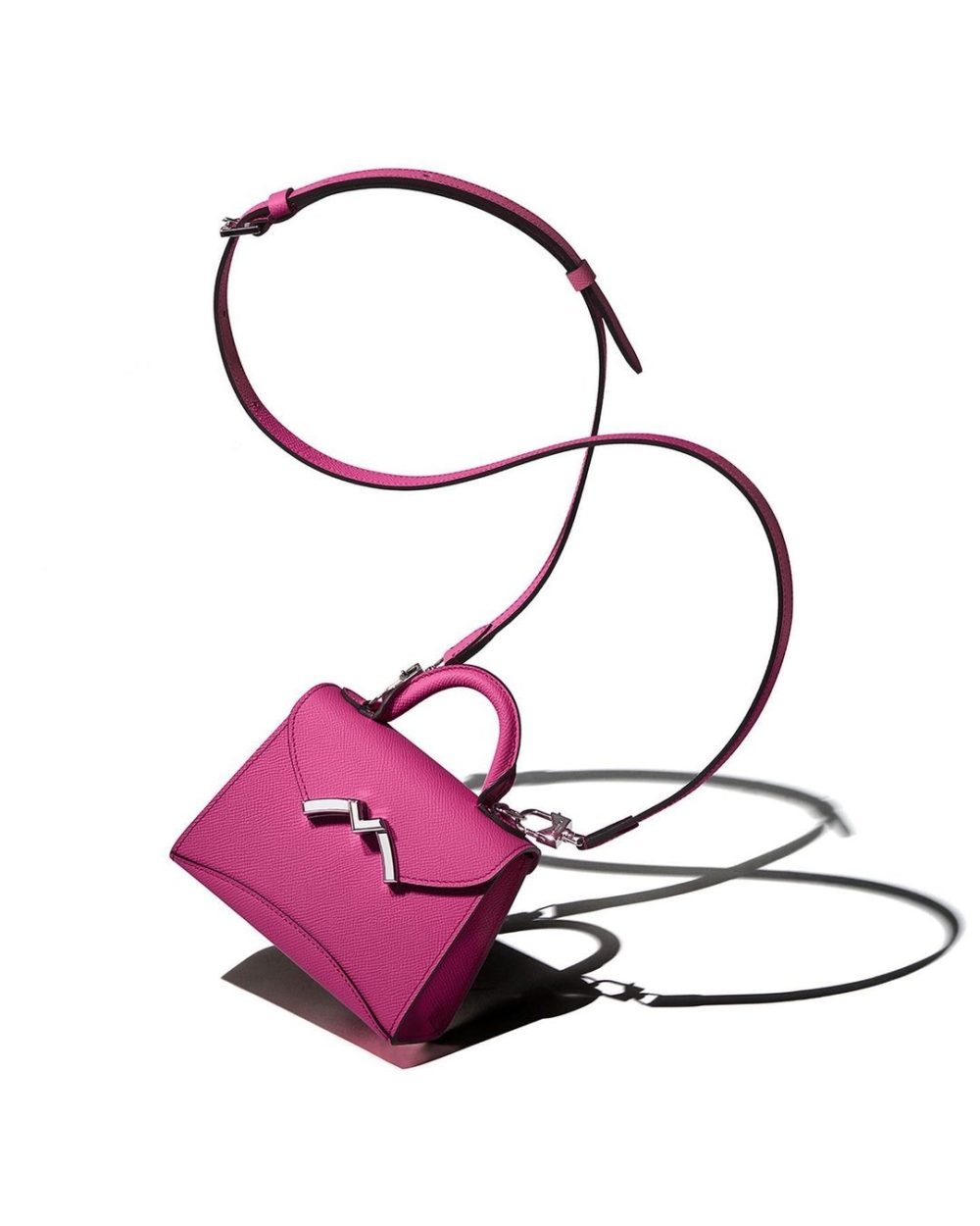 Moynat Gabrielle Nano為七夕情人節推出三款限量顏色版,有桃紅、淺粉以及深紫色,以骨董豪華轎車後備箱為設計靈感的外觀,所採用的Carat小牛皮十分輕巧耐用也易於保養,搭配銀色以及金色五金開扣,內襯全粒面Perla小牛皮,附有可調式肩帶以及提把,無論當作斜挎包或單肩包都獨具型格。HK$23,750