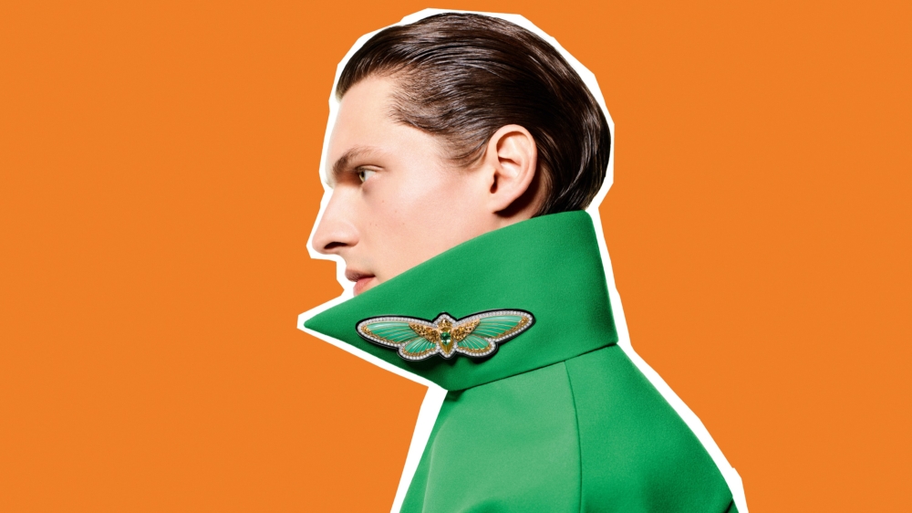 三色堇(Pansy)以黃金結構重現真實花瓣樣貌,展現天然紋理。開放式底座覆以珍珠母貝、玫瑰石榴石、粉紅石英和紫水晶,中心的部分則為黃色藍寶石。飛蟬(Cicada)選用的寶石與材質外觀輕盈、柔軟且精美,呈現媲美毛氈製成的輕薄質感。綠玉髓則為展開的雙翼注入完美的顏色,搭配黃色藍寶石、鑽石與黑色飾漆。珠寶正中央的 2.14 克拉碧璽更為這件讚揚大自然的傑作注入優雅氣息。第三款Jack胸針設計靈感源自音源線,鑽石密鑲搭飾漆胸針,材質為黃金與白金。