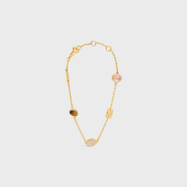 Triomphe Indie Bracelet手鐲有著優雅華美的精緻設計,綴有品牌經典的凱旋門標誌並飾以黃銅及髮晶及粉晶及虎眼石,鐫刻CELINE PARIS標誌,佩戴在手上把高級品味完美顯現,特別是經典的首飾更能成為歷久彌新的作品。HK$5,400
