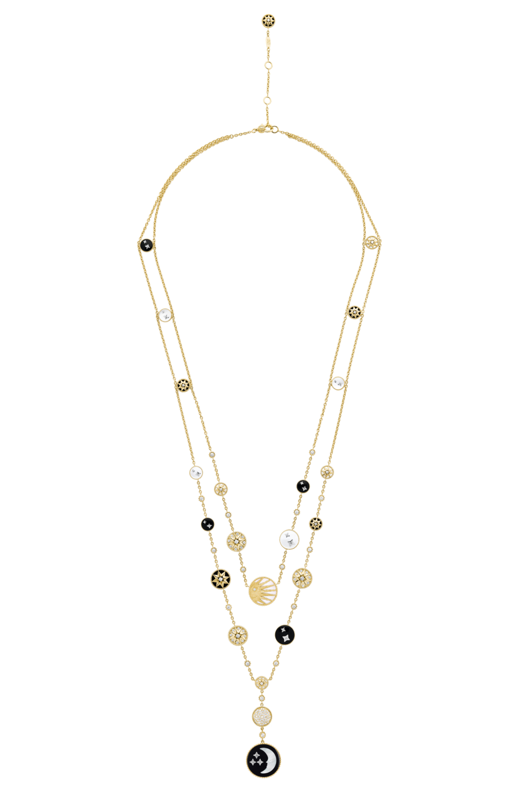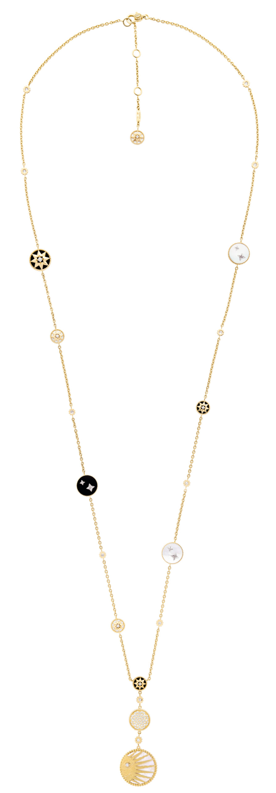 「Rose des Vents」珠寶系列靈感源自Christian Dior的童年故居「Rhumbs」莊園別墅,在別墅入口處鑲嵌著32分位羅盤玫瑰馬賽克拼貼裝飾,有如船員航海時手上拿著的羅盤,在法文裡的名稱正是Rose des Vents。在2015年之際,珠寶創意總監便結合Christian Dior對於占星學的熱愛,種植於別墅的花卉,以及他所鍾愛的玫瑰也成為系列元素之一,「Rose des Vents系列」也暗喻著探索以及展開新航程的結晶。