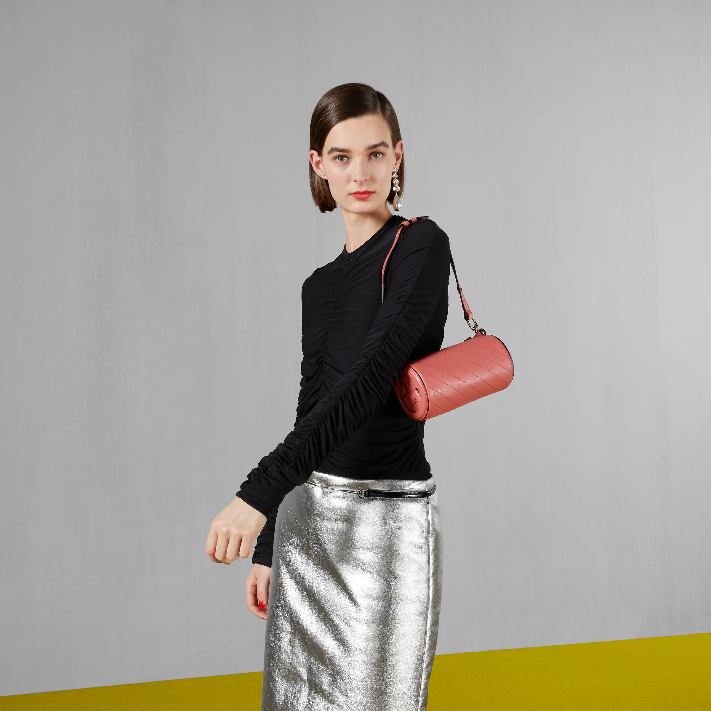 「Blondie」系列最大的特色就化作圓型的Logo,全新迷你包小圓筒包則將Interlocking G作為兩側的圓形圖案,附有同色調的皮革手提把,可以作為腋下包肩背上身,更增添包包的可愛俏皮感,拉鍊處採用圓形互鎖G拉鍊頭,把復古感的細節做好做滿!推出迷你尺寸的粉色以及白色款式,還有推出黑色小號款式,質感黑色外觀輕鬆搭配不同的日常造型。迷你款HK$13,800,小號款HK$ 15,800