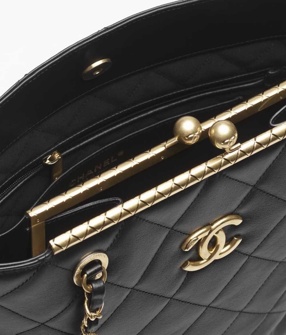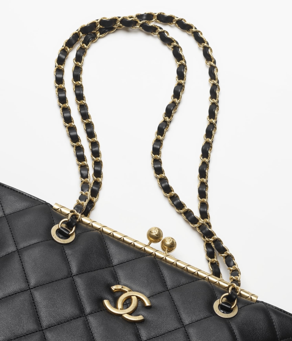 CHANEL本季推出的全新SHOPPING BAG,回歸最經典的元素,菱格紋、雙C金屬配件、雋永的黑色調,沒有多餘的點綴卻完美展現輪廓之美及實用性,搭配皮革交織金屬的揹帶,隨性組合能時髦上街。HK$47,900