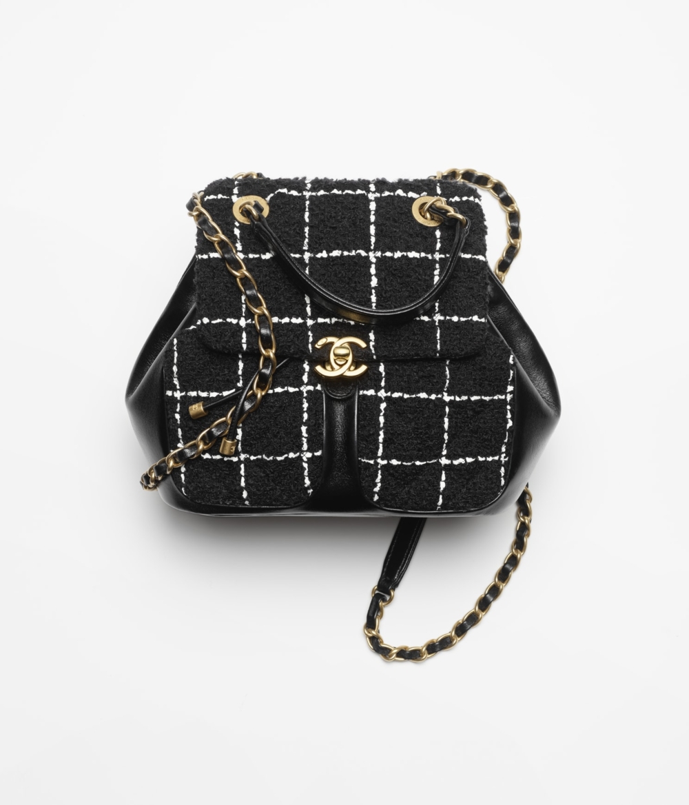 後背包向來是品牌每一季會推陳出新的經典,這次以羊毛花呢及黑色和金屬元素的組合,成為秋冬裡矚目的亮點之ㄧ。並且附上手提把和皮革交織金屬的鍊條,搭載雙C金屬,想要怎麼攜帶都能率性有型。HK$41,100
