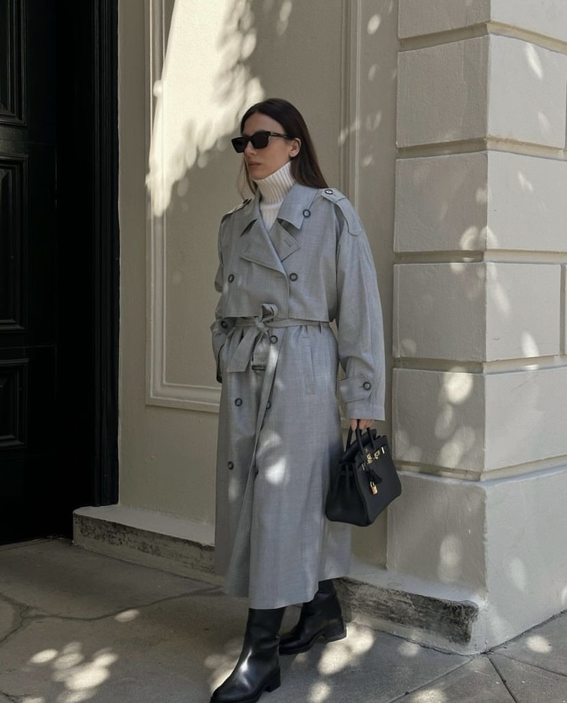 秋冬時經常以一件率性充分展現態度的風衣大衣當作主要造型之一,把側邊腰帶綁起來直接了當地穿,營造出氣勢感。又或是裡面搭配一件舒服自在的單品都能不搶走風衣的亮點,展現俐落摩登的現代時尚氣息。