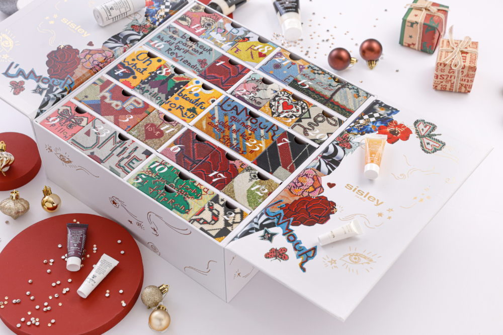 設計靈感來源於Sisley創辦人親手設計的人手刺綉枕頭裝飾。長方型月曆盒,備有25個小盒子,每一個飾有不同顔色的刺綉圖案,盛載著25個來自Sisley的快樂驚喜,當中包括人氣經典全能乳液、享負盛名的抗老臻品S面霜(活膚再生駐顏霜)、全天候守護肌膚的全天候修護日霜、最新推出的升級版至臻活膚再生晚霜及HAIR rituel的洗護產品等等。