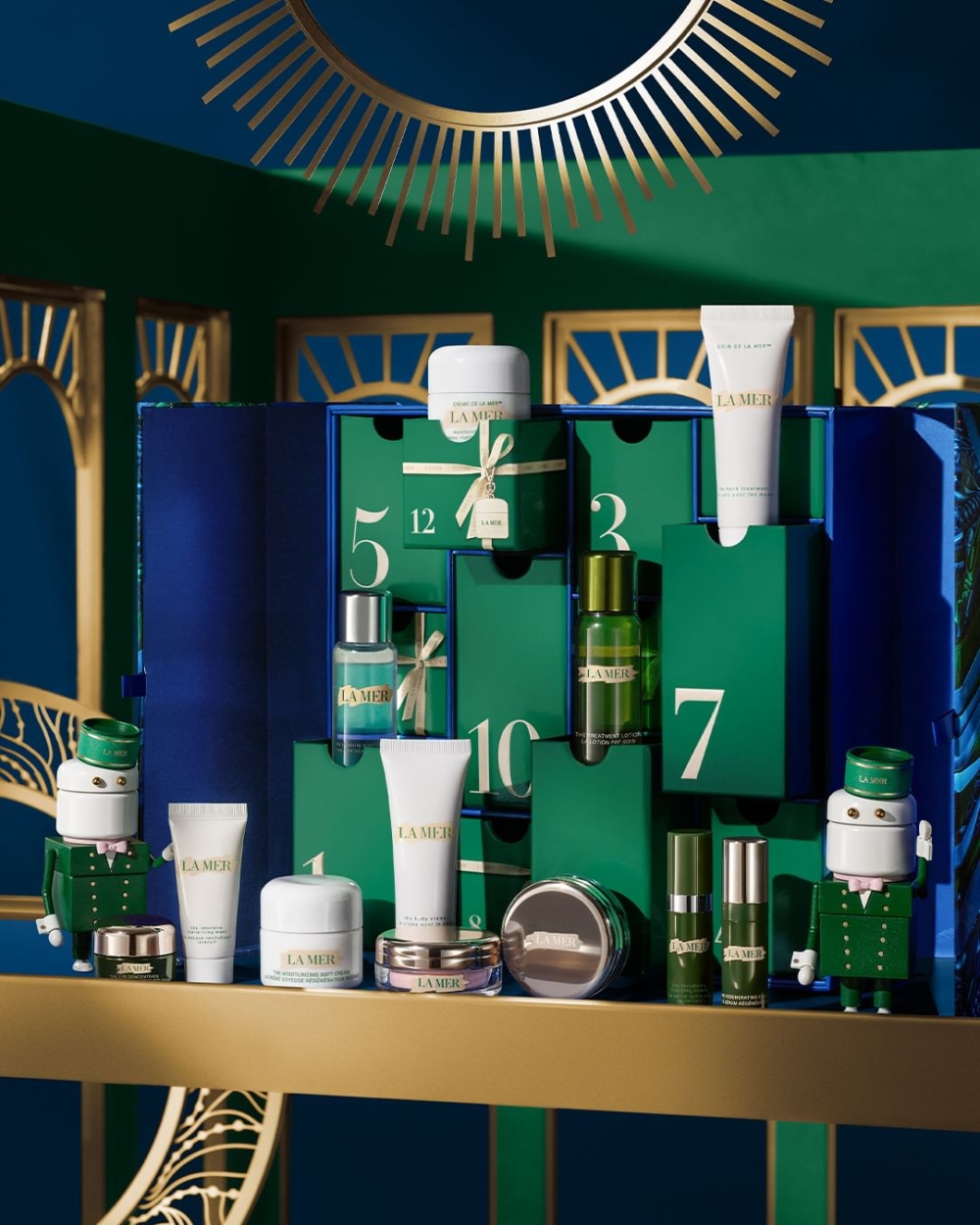 La Mer用家每年最期待的套裝,因為每一件都好實用,並且自己會用。滿載迷人魔法的日曆中,是12款皇牌好物,當中包括肌底修護液 30ml、卸妝潔膚水 30ml、活膚煥采面膜 15ml、賦活保濕精華 5ml、再生活膚精華 5ml、眼部精華乳霜 5ml、修護唇霜 9g、柔嫩磨砂潤唇霜 9g、精華柔潤乳霜 15ml、精華面霜 15ml、護手霜 30ml及身體修護乳霜 30ml,全面照顧面部及身體肌膚所有需要。