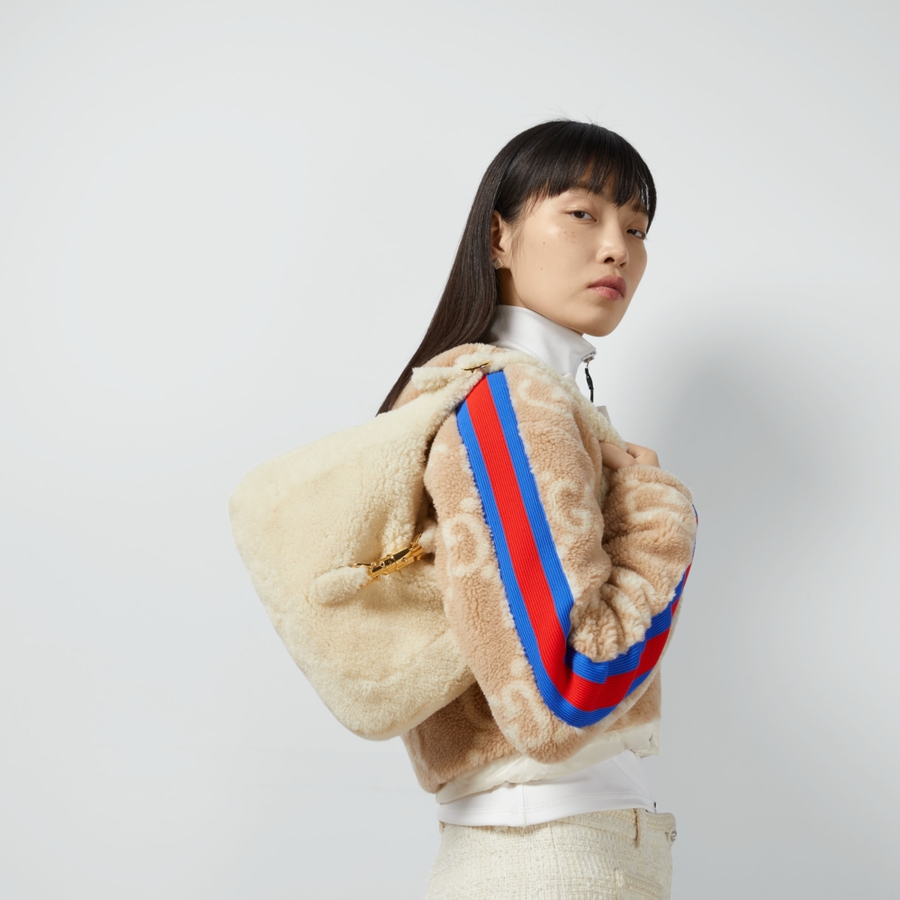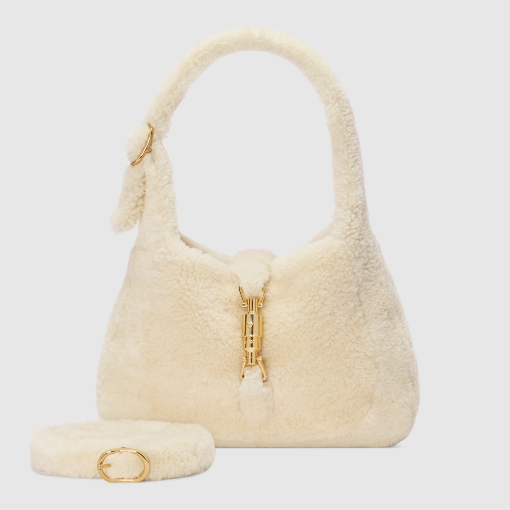 Gucci早春滑雪系列為手袋換上毛茸茸的材質,Jackie 1961小號肩背包披上黑、白兩色羊毛皮,與金色Gucci五金配件相結合,讓你在冷颼颼的深冬依舊保有時髦與型格。HK$28,500