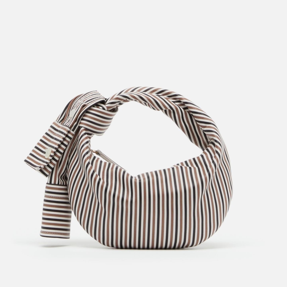 這款沙丘混色的Jodie手袋採用羊毛和絲綢製成,設計看起來像帶結袖的舒適套頭衫,以拉鍊開合,帶有長袖的紐結設計視覺感又更加強烈,即使隨性搭配上衣、牛仔褲也能充滿個性!