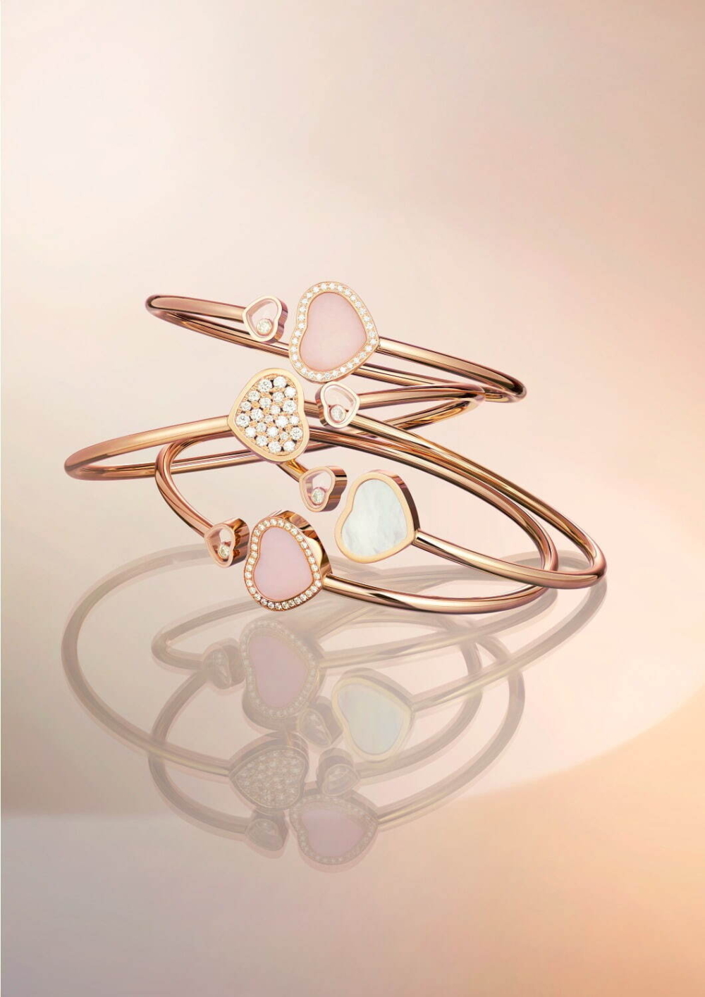 Chopard 2024年為經典系列推出新色彩,心形圖案與閃閃發光的鑽石相結合的「Happy Heart」,換上了華麗的粉紅色蛋白石和大珍珠母貝,吊墜、耳環以及手環均採用18K玫瑰金製成,精美絕倫。此外,還有帶有透明珍珠母以及明亮式切割鑽石的吊墜,彷彿閃爍著夢幻光芒。Chopard My Happy Hearts玫瑰金粉紅蛋白石項鍊HK$14,200,Chopard My Happy Hearts玫瑰金鑽石珍珠母貝吊飾HK$59,000,Chopard My Happy Hearts玫瑰金粉紅蛋白石耳環HK$8,600