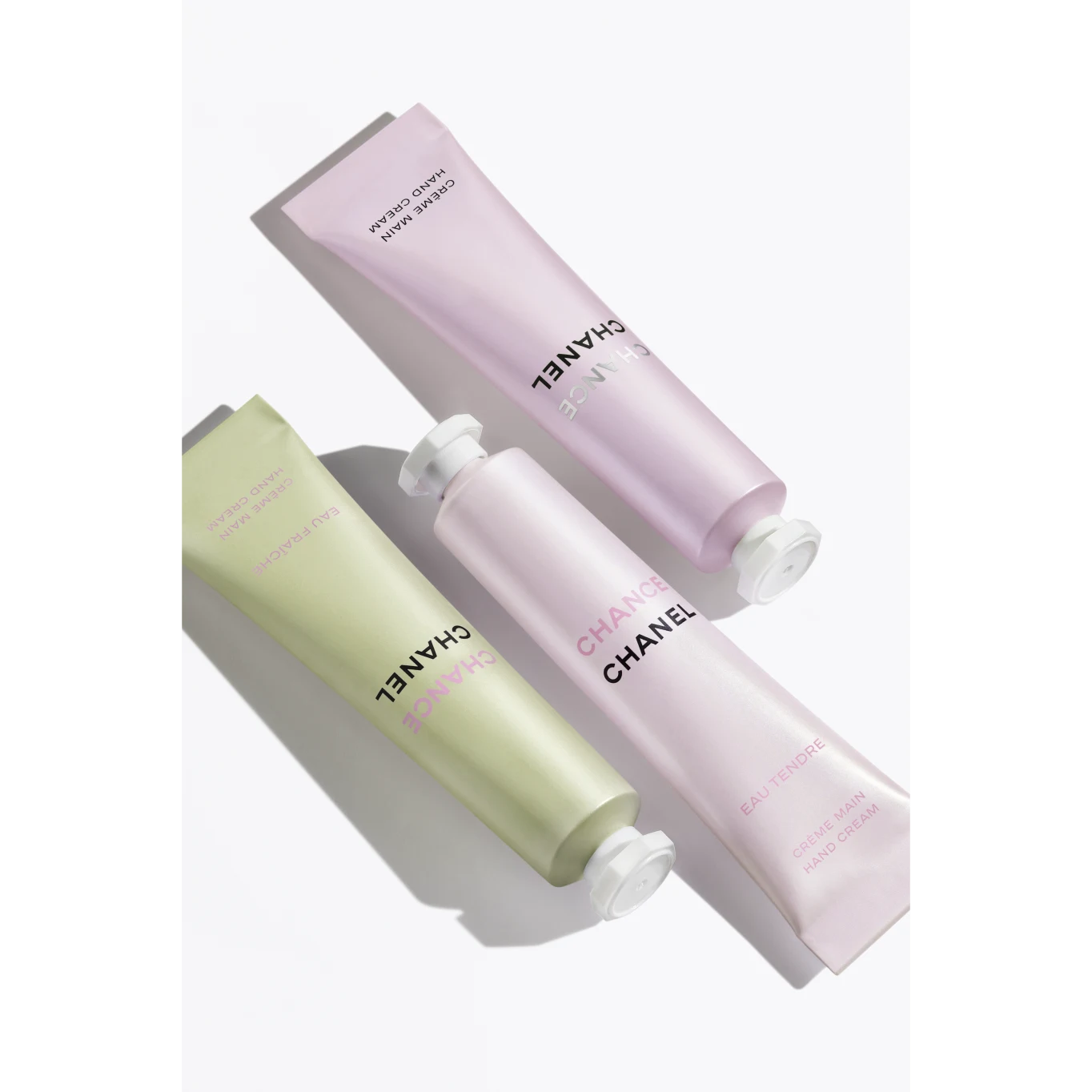 限量創作的3件芳香護手霜套裝,分別散發著CHANCE(辛辣花香調)、CHANCE EAU TENDRE(花果香調)和CHANCE EAU FRAÎCHE(清新花香)的淡淡迷人細緻芳香。護手霜質感細膩輕盈,與肌膚自然融合,傾注修護養分,滋潤及柔軟雙手肌膚。加上設計輕巧,可輕鬆收納於小袋子中,讓你全日隨時隨地也能延續CHANCE香水的芳香。