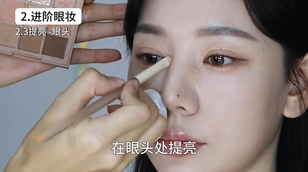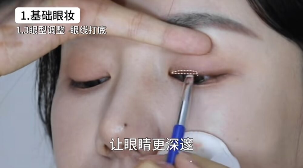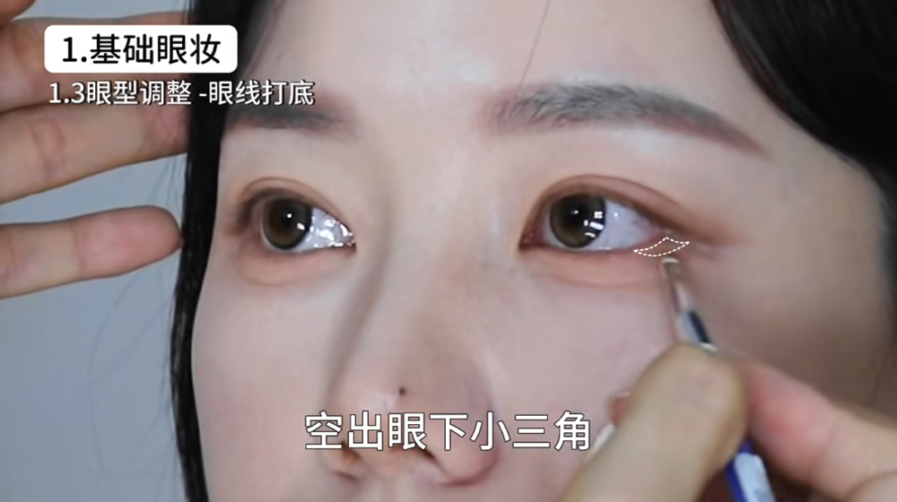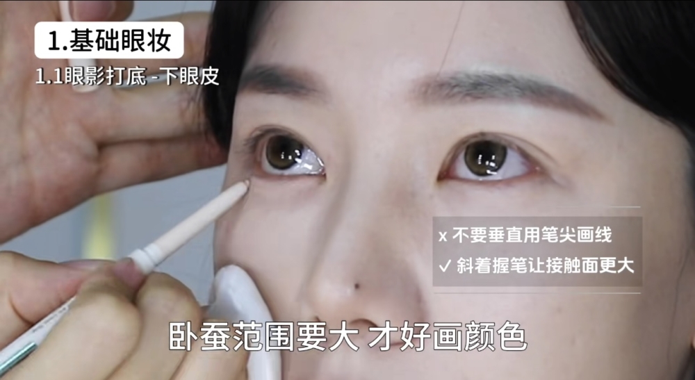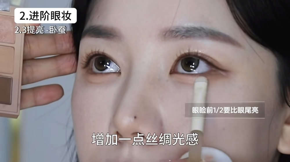 -用提亮裸色眼影筆擴大原生臥蠶,這樣有助後續上色;