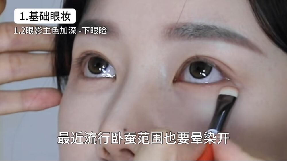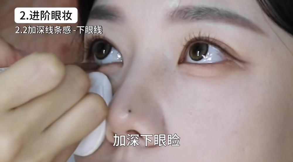 -以眼影主色在靠近下睫毛位上加深下眼瞼,向下微微暈開,營造少女感。