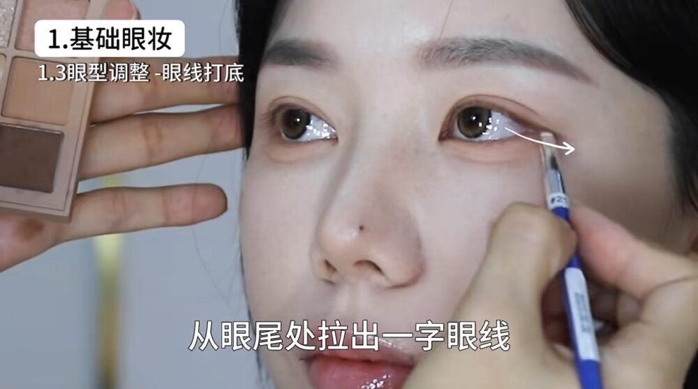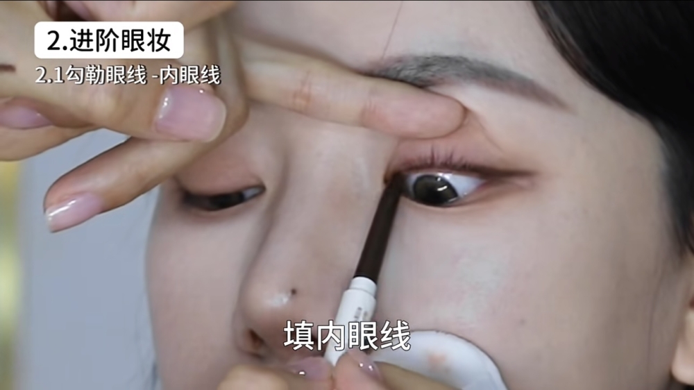 -再用啡棕色的眼線筆填滿下內眼線,微微加深就可以(不要太重手),令眼神看來更柔和。