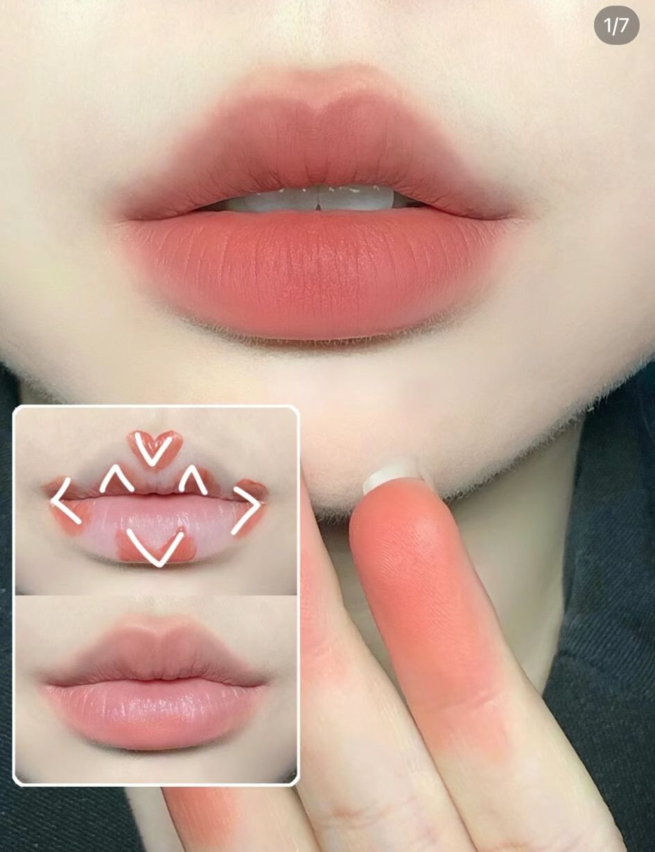 唇妝方面,你亦可以再次採用「6V」畫法,將6個V都畫在雙唇之上,分別是唇峰、唇珠兩側、下唇、嘴角及上唇峰,再用指腹暈染開去,這樣你就能擁有軟萌嘟翹的純欲唇。