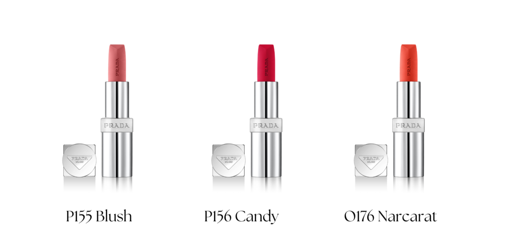 第一款推薦的唇品是PRADA BEAUTY的MONOCHROME唇膏(HK$370),當中的Soft Matte唇膏(銀色方環)所呈現柔霧色彩真的很適合用來化全妝,特別是胭脂、腮紅的位置,十分自然。顏色上粉色系的P155 Blush、P156 Candy及橙色系的O176 Narcarat等十分百搭。