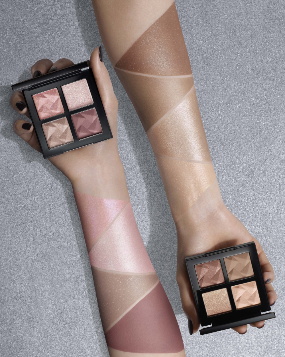 靈感源自日式摺紙,是專為亞洲膚色而設,色調完美修飾眉眼輪廓,從眼窩到淚袋、鼻與眉都照顧到!運用淡紫或米色調為雙眼輪廓塑型、提亮、著色及描畫。每個立體眼影組合都擁有兩款全新質感,分別是能呈現柔和妝效,帶有多重珍珠金屬光澤與朦朧金屬效果的修飾系霧面色調;以及深邃眉眼輪廓,融入細緻炫彩珍珠粒子的混光碎閃提亮金屬色調,將原生立體輪廓精緻升級。