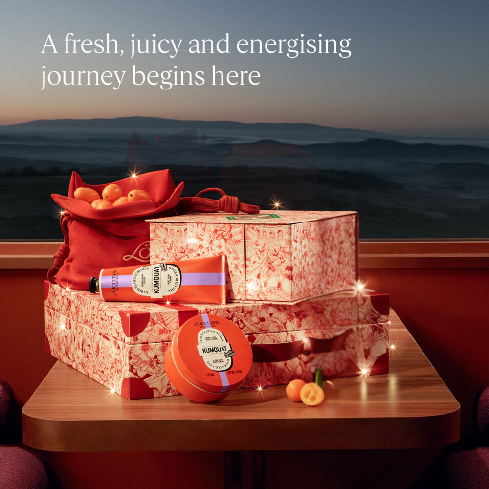 即日起至11月27日,只要進入網站連結登記:https://bit.ly/4fsJ4MI ,就可於L'OCCITANE門店免費領取驚喜香氛小禮品。購買任何指定節日限定套裝,更可親自設計專屬的100%純素皮革臻緻旅行牌,完美記錄這次難忘的旅程。
