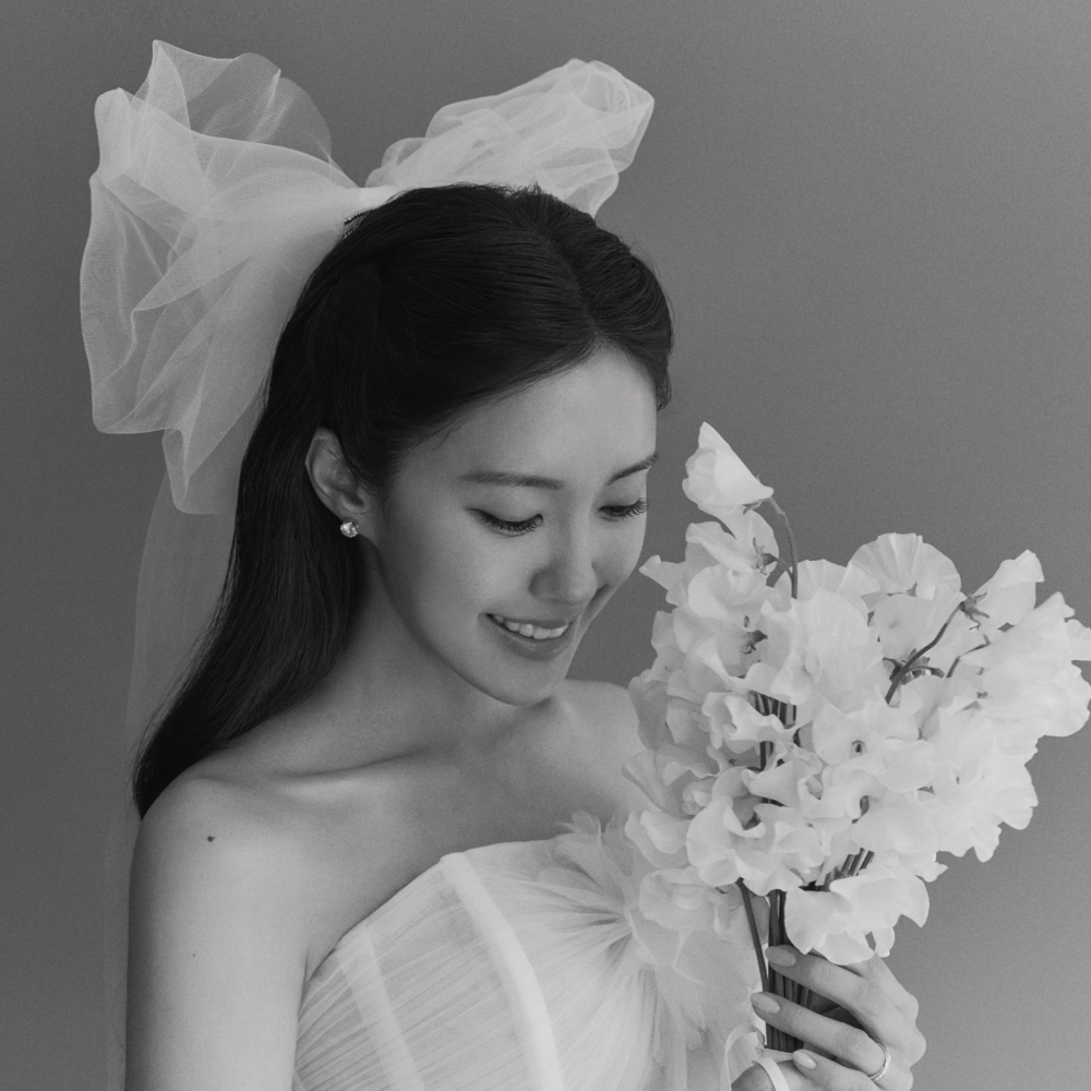 除了 Sara Mrad 的夢幻婚紗,孝敏婚紗照還換上了來自韓國知名婚紗品牌 Atelier KU 的婚紗,這個品牌以簡約而不失浪漫的設計而聞名。她所穿的這款婚紗,設計上有著獨特的收腰剪裁,搭配蓬紗裙,簡單卻充滿浪漫感。上身的馬甲設計,巧妙地運用了抓皺的裝飾,讓婚紗更具立體感,增添了幾分仙氣。