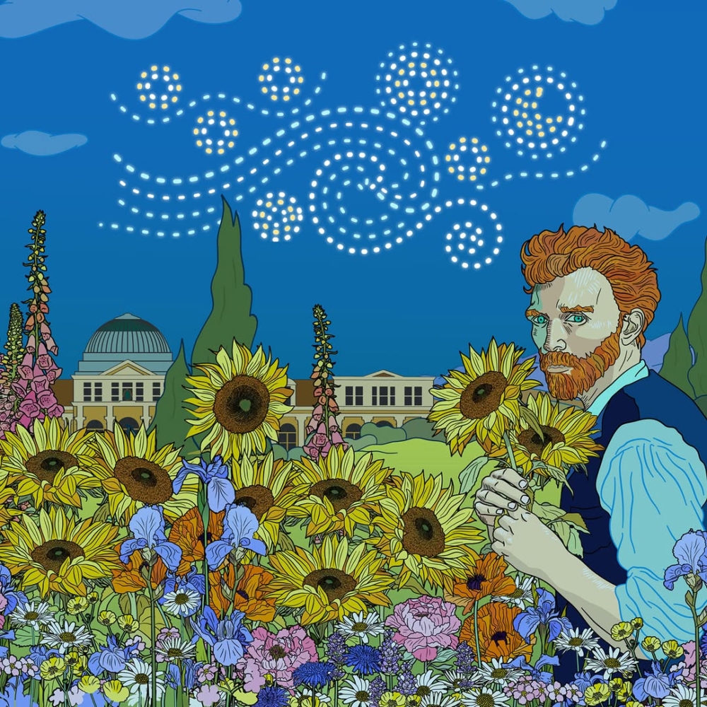 走進梵高的花園:紐約植物園《Van Gogh’s Flowers》沉浸式展,欣賞巨大向日葵花田、夜間無人機《星空》表演