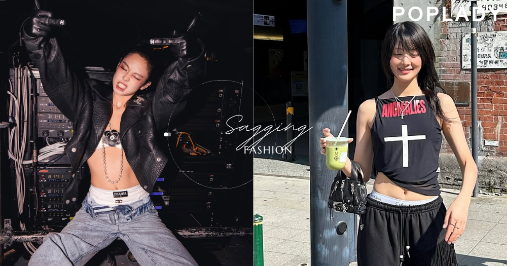 當時尚開始追求一種看起來不費力的狀態,Sagging(掉褲子)風便自然回歸視野。從最初帶點叛逆意味的「露內褲頭」,到如今被重新解構、精緻化的層次穿搭,它早已不只是街頭文化的象徵,而是一種關於比例、鬆弛與態度的時髦語言。而今年,這股風格更進一步升級,不只是真的內褲,甚至連「假的褲頭」、「蕾絲腰邊」,都成為造型的一部分。